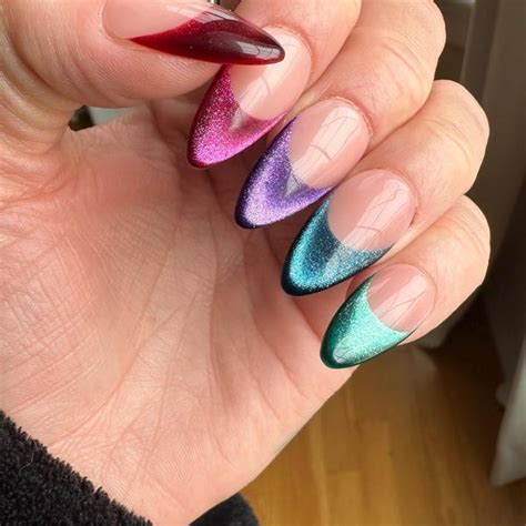 Light, soft colors like nudes, pastels, and whites enhance the delicate shape of almond nails. However, bold and vibrant colors also look stunning, creating a dramatic effect.